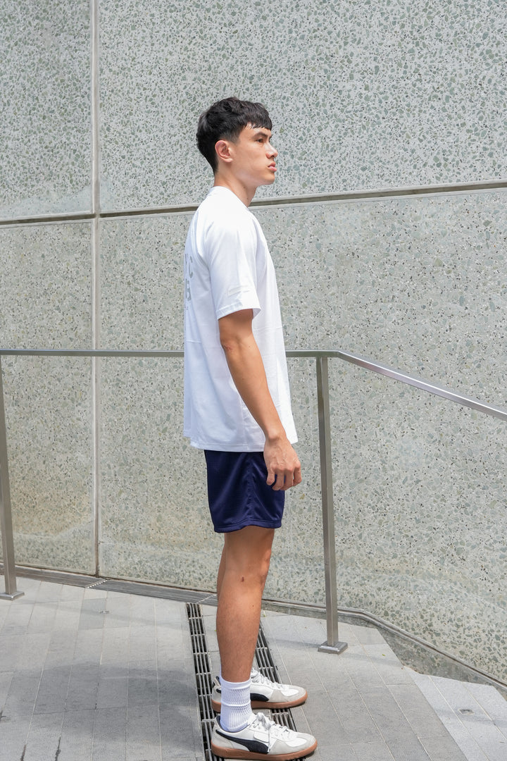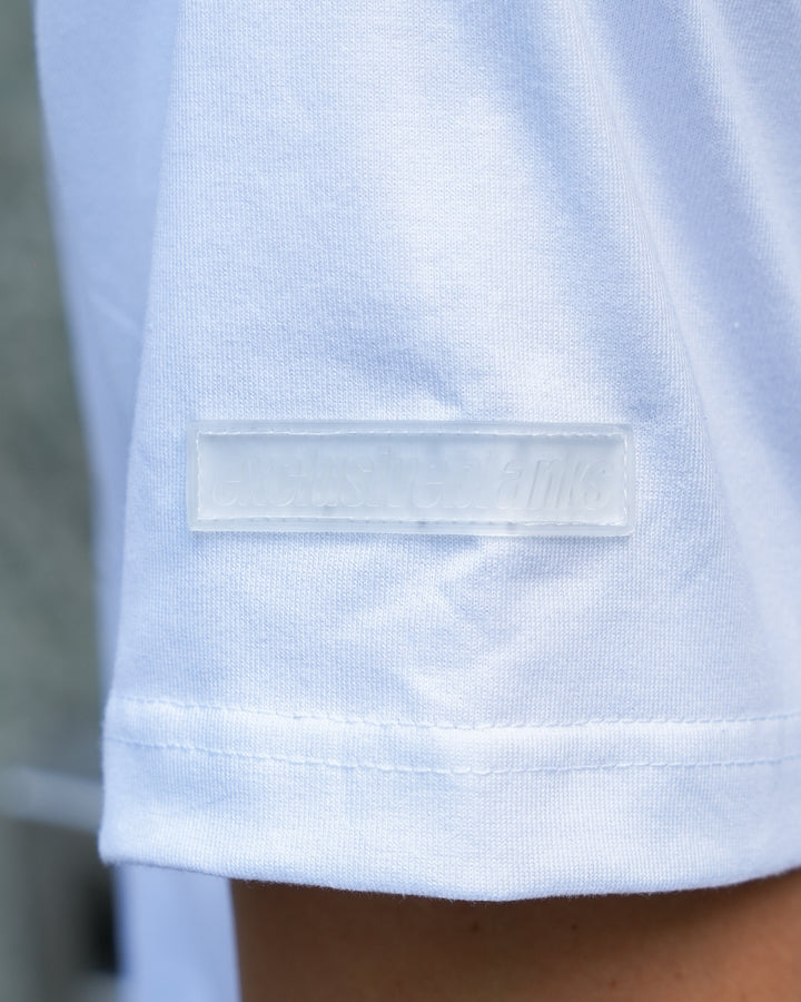 Introducing the Classic Athletic Tee in White — a refined essential crafted from 100% Korean cotton fabric for unmatched comfort and breathability. Designed in a raglan cut with a casual fit, this piece combines athletic structure with everyday ease. It features a premium silkscreen print and is finished with a distinctive rubber patch logo on the left sleeve, adding a subtle mark of identity.