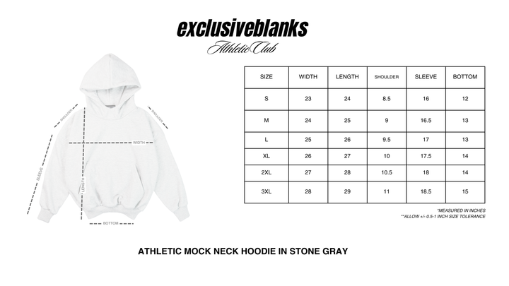 Introducing the Mock Neck Athletic Hoodie in Stone Gray — a modern staple defined by its structured silhouette and elevated details. Cut in a boxy fit with a contemporary mock neck, this hoodie delivers both comfort and edge. Finished with a premium silkscreen print, it merges minimalist design with a bold athletic presence.